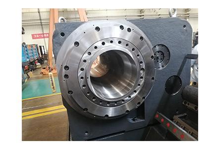 2) 主軸為高精密通孔式主軸,采用國產(chǎn)大直徑精密雙列圓柱滾子軸承和雙向角接觸球軸承組合排列,剛性好、精度高,采用強(qiáng)制油潤滑,在恒溫、凈化環(huán)境下裝配,并經(jīng)過精密靜平衡測(cè)試,可保證主軸運(yùn)轉(zhuǎn)平穩(wěn)。